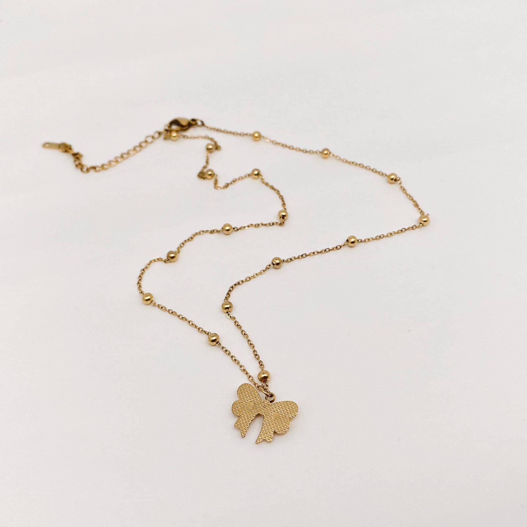 Gold Plated Stainless Steel Bow Pendant Necklace